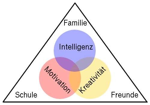 Das triadische Intelligenzmodell nach Mönks zeigt, welche Faktoren für eine Hochbegabung zusammenkommen müssen